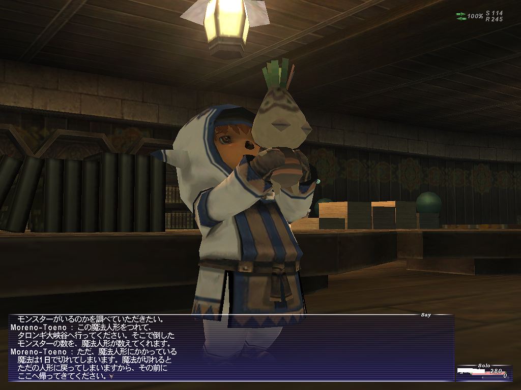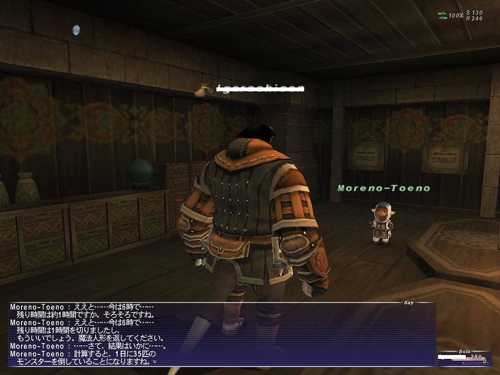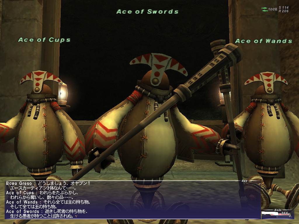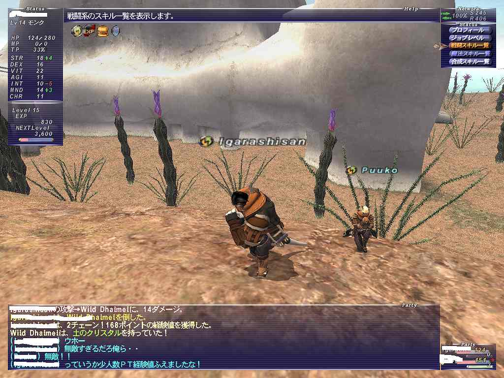 × [PR]上記の広告は3ヶ月以上新規記事投稿のないブログに表示されています。新しい記事を書く事で広告が消えます。 ミッションを受けて天の塔へ。このそそり立ってる男らしいものが天の塔です。 会議が終了したので入っていいぞとのこと。 ランク1の新米は帰れ!っていう訳ではなかったんですね。 天の塔入り口。この光っているところに入ると・・・ 建物の中にワープ。ハンパないタル! BGMがクロノトリガーを思い出させます。 神子様は心の広くあらせられる御方らしい。ハンパないタル! 簡単に言うとミッションの内容は同盟を結んでいる他国へのスパイ。 怪しいことがおこっていないかとね。でもイベントで既にフラグビンビンです 以前、他国出身でプレイしていたのですが、ところどころでウィンダスは事なかれ主義の 腰抜けだ、みたいなことを言う人がいたのですが これはふかーい事情があるんだフラグですね。わかります。 暫くウィンダスには帰れない。オフゲー的に考えて。 旅立つ準備を万全に! 競売で放置してメシくってたらウオオオオオ 話を楽しみつつウィンダスを出発。名残惜しさもクソもない旅立ち。 タロンギでバッタリ! まずはバストゥークに向かおうとしていた訳ですが、 道中に避けられない敵がいることを思い出し、レベルを1つ上げておこうと思っていたので 暫しパーティをすることに! まもなくレベル15にアップ!レベルシンクも初体験 お約束のイベントもこなしつつ おなつよ、つよを交えてのチェーンなんかもやってみたり PTプレイうめぇ! 競売前で放置していたせいでシグネッツがきれる。 がその流れでFovも初体験。鳥を8匹倒すという内容で、 ボーナス経験値が450もらえました。 チャットしながらだとやはり楽しくて時間を忘れてしまうぜ。 いつのまにやらもう1こレベルがあがりそう。 そしてレベル16にアップ!楽しすぎワロタ 箱まで空気を読み出す完璧っぷり。 楽園の扉が開かれすぎ ネコさんもレベル16になりました。 ネコさんがメシの時間ということで解散。 もちろんフレ登録するでしょう 再会の約束をしてガルカも旅立つ。いやあ楽しかった タロンギを超え、ブブリム半島。 目指すはその南部にある港町マウラ。次回船旅! PR では今回もミッションをガンガン進めていこうかと思います。 ランク2の2番目のミッションは、魔法学校の実戦授業に協力とのこと。 水の区にある口の院?(多分)にやってきた。 タロンギで実戦授業をするためのデータを実際戦って仕入れてこいとのこと。 ギップル的な人形を貰う。 コイツが倒した敵をカウントしてくれるとのこと。 不細工だなぁ そして制限時間は一日(リアル1時間)。 時間をすぎると人形にかけた魔法が消えて、やり直しになってしまうとのこと。 時間もないので早速タロンギへ向けて出発。 外人とのインターナショナルな交流なども交えつつひたすら走る。 タロンギに到着。朝7時半ごろ出発したはずなのにもうお昼だ。 サルタバルタって設定的にはやっぱり結構広いんだね。 日付が変わるころには帰り始めたほうがいいだろうということで タイムリミットは約12時間(30分)。 指輪を使っても稼ぎきれないだろうと思うので未使用で。 てな訳で戦闘開始。 かぞえる君がカウントしてくれるとのことだったのに倒しても戦っても終始無言。 あのクソ博士不良品よこしやがったんじゃねえかw 生肉食ってパワーアップ!! ガルカ以外の種族は調理しないと食べられません。 ちなみにミスラは生魚を食べることができます。 仕事をしないかぞえる君はもう忘れて修羅の如く殺戮を繰り返すガルカ。 まちがいなくこいつは闇王になる。 相変わらずコレにはロクなもん入ってねえなwww 敵を倒した数をカウントする・・ということだから、弱い敵をできるだけ沢山倒しているんだが かぞえる君がずっとスーパーシカトタイム入ってるのでこれであってるのかどうか不安。 日も暮れて夜の20時。生肉食ってラストスパート やってることが正しいのかよくわからんがこのまま突っ切るしかねぇ! そろそろ日付が変わるので帰ります。 なんだかヴァナ時間が重要なミッションをしていると 帰り道が何時間だからー とか、あそこに行くと往復にどれだけかかるから いかないほうがいいな、とか、RPGって感じで楽しい。 帰り道のルートをかえたら少しはやく到着。 って、時間ギリギリにならないと話が進まないんだね。 35匹倒した、ということで本当によくわからんかったがミッションクリア。 予想以上の数だ。とか言ってたからもうちょい少なくてもクリアできたのかもしれない。 もっと多いとボーナスとかもらえたのかね? そして・・・ついにこのミッションを受けるときがきた。 FF経験者ならわかると思うけど、こいつが序盤のYAMABAであり ボスとの戦いや、他国への旅があったりする超wktkミッションです。 次回はこいつに挑戦していこうとおもいます! という訳でウィンダスに帰ってきました。 帰り道にも女帝の指輪を使用し、レベルも13にな